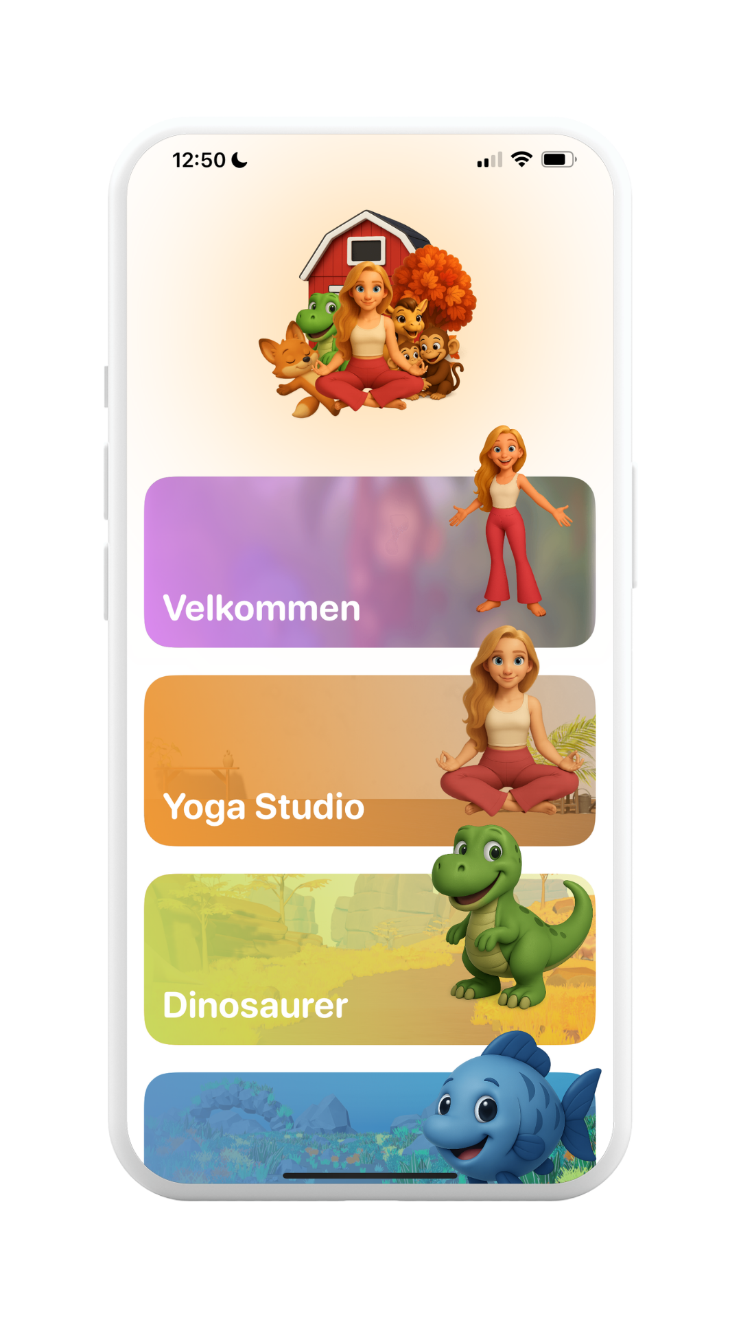 Med universer som dinosaurenes tid, under vann og yoga studio, vil barna finne sine favoritter. Favorittene kan legges i en egen spilleliste, som barna kan spille av på repeat. Her er det noe for alle og enhver, og flere videoer og universer skal det med tiden bli.