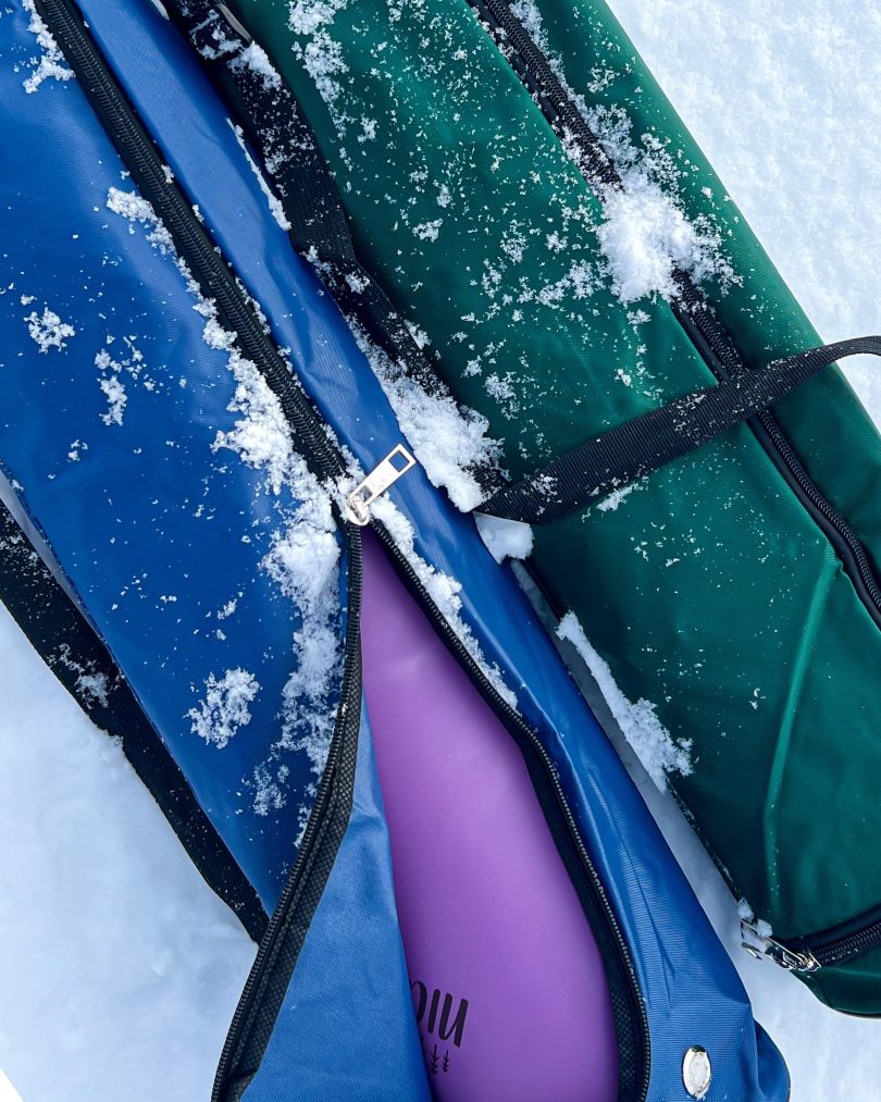 Vår bag er vannavstøtende og beskytter derfor yogamatten din mot både vann og snø.